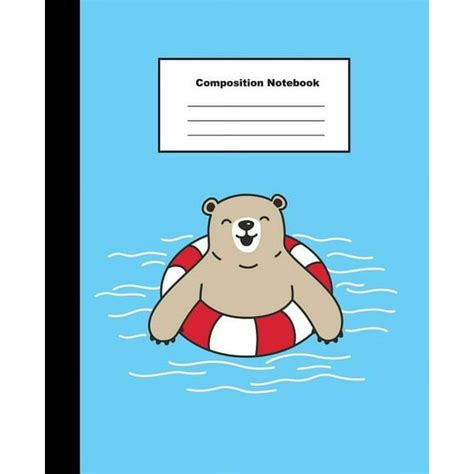 Read Composition Notebook: Smiling Brown Bear in Blue Swimming Pool Wide Ruled Note Doc